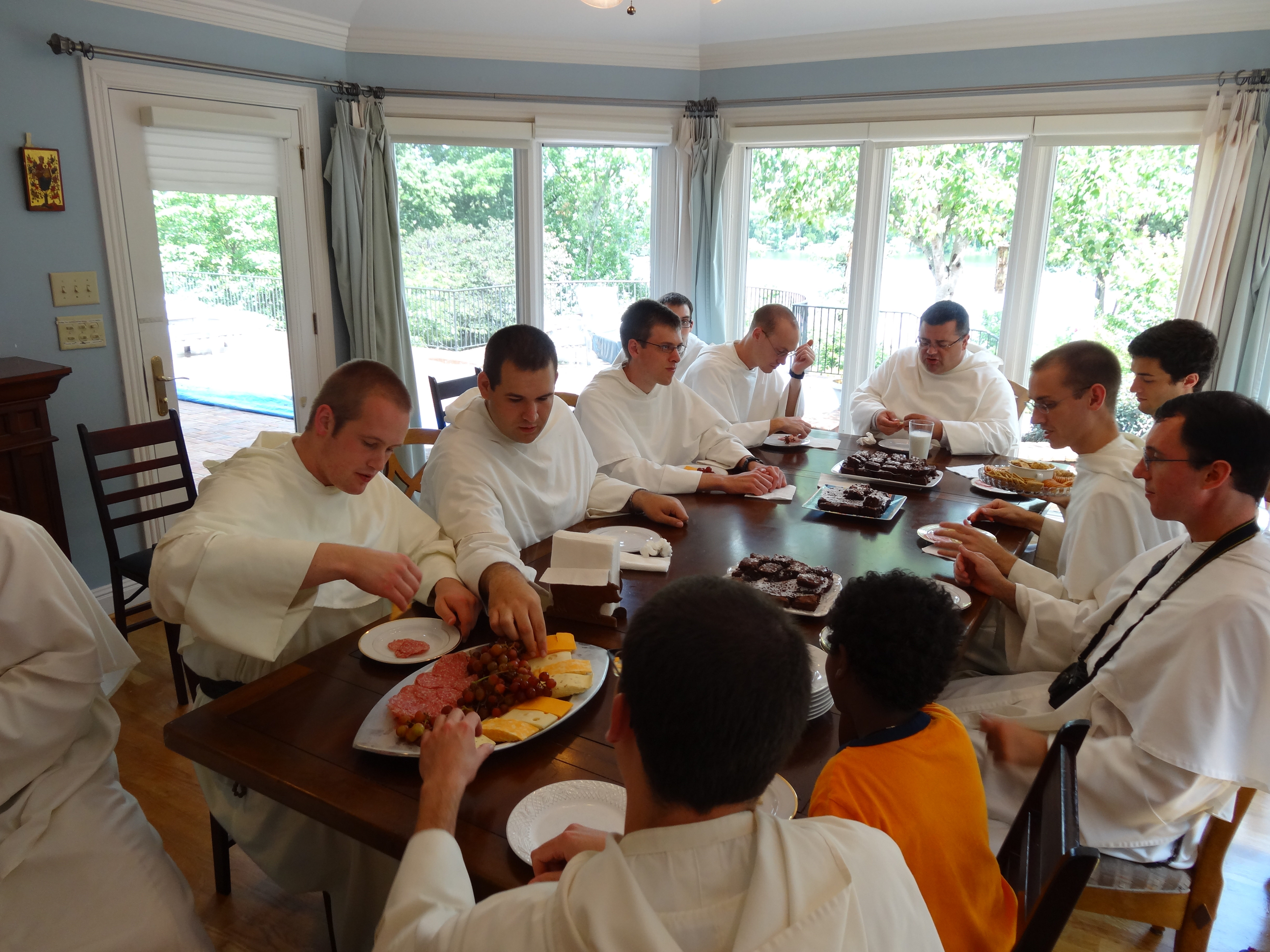 He has a new name, Brother Peter Joseph. He has new clothes, for most of the time, his white habit and black copa (cape). He has 12 new brothers, and as I’ve now begun to get to know them….they are great guys. Now, I guess that’s no surprise, they would be, right? Well, by and large, they are. Which is a comfort to my mom’s heart too. It’s getting cold up there but I sent up his coat (and cookies).